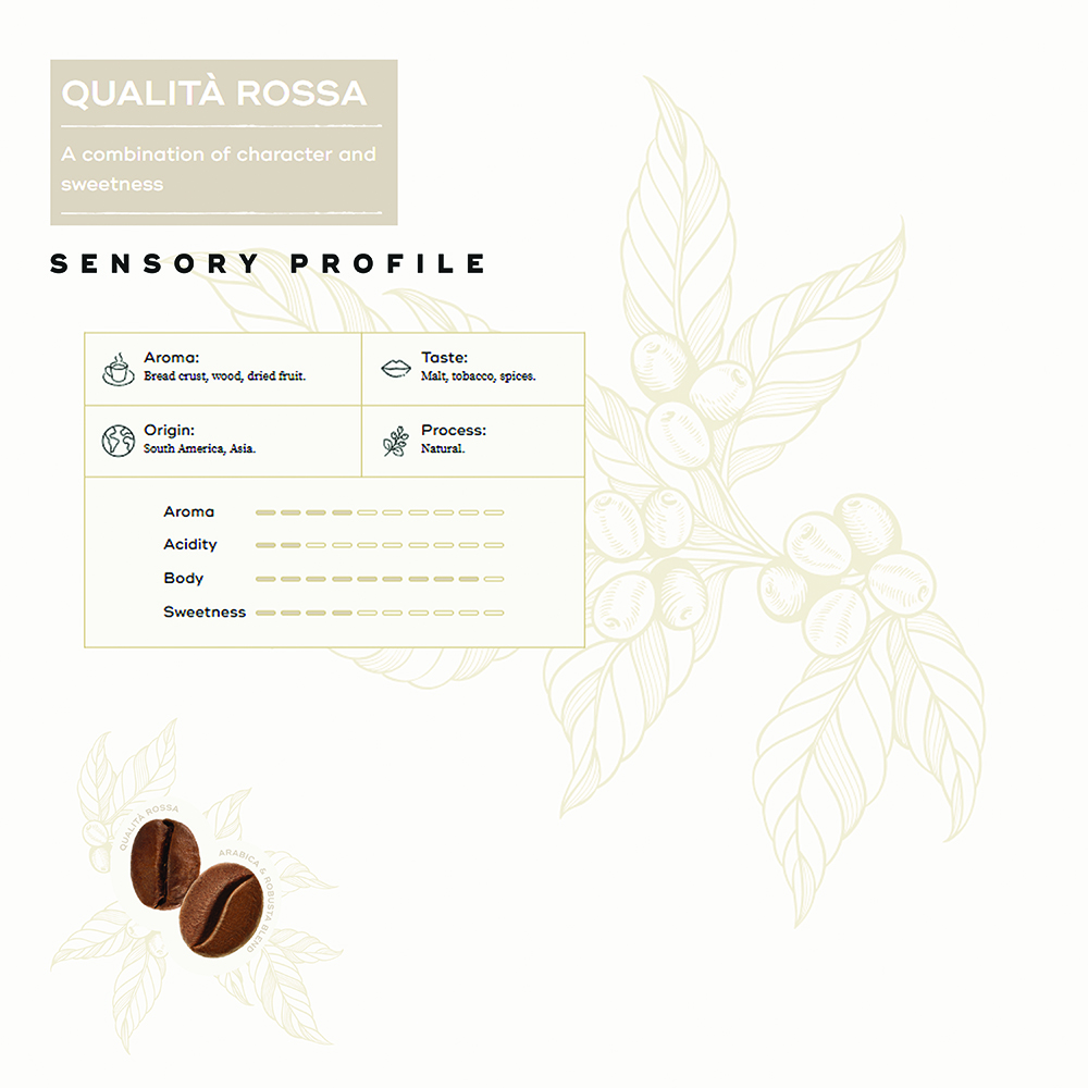 Hausbrandt Qualità Rossa is a coffee characterized by a full and Strong body, and a sweetness that softens the palate.