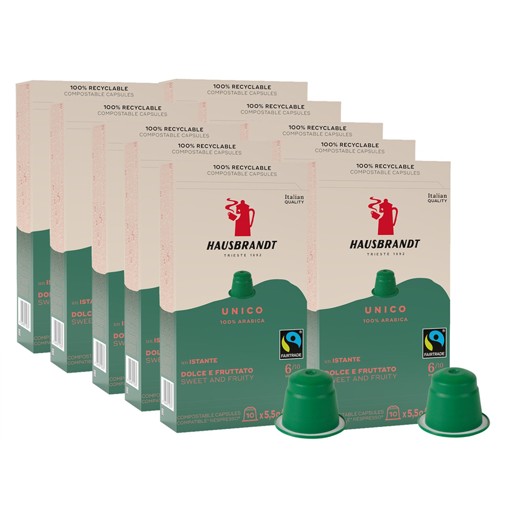 A selection of the best Hausbrandt blends is now available in the capsule version compatible with the Nespresso® system. The Nespresso® brand is not owned by Hausbrandt Trieste 1892 SpA nor by companies connected to it.